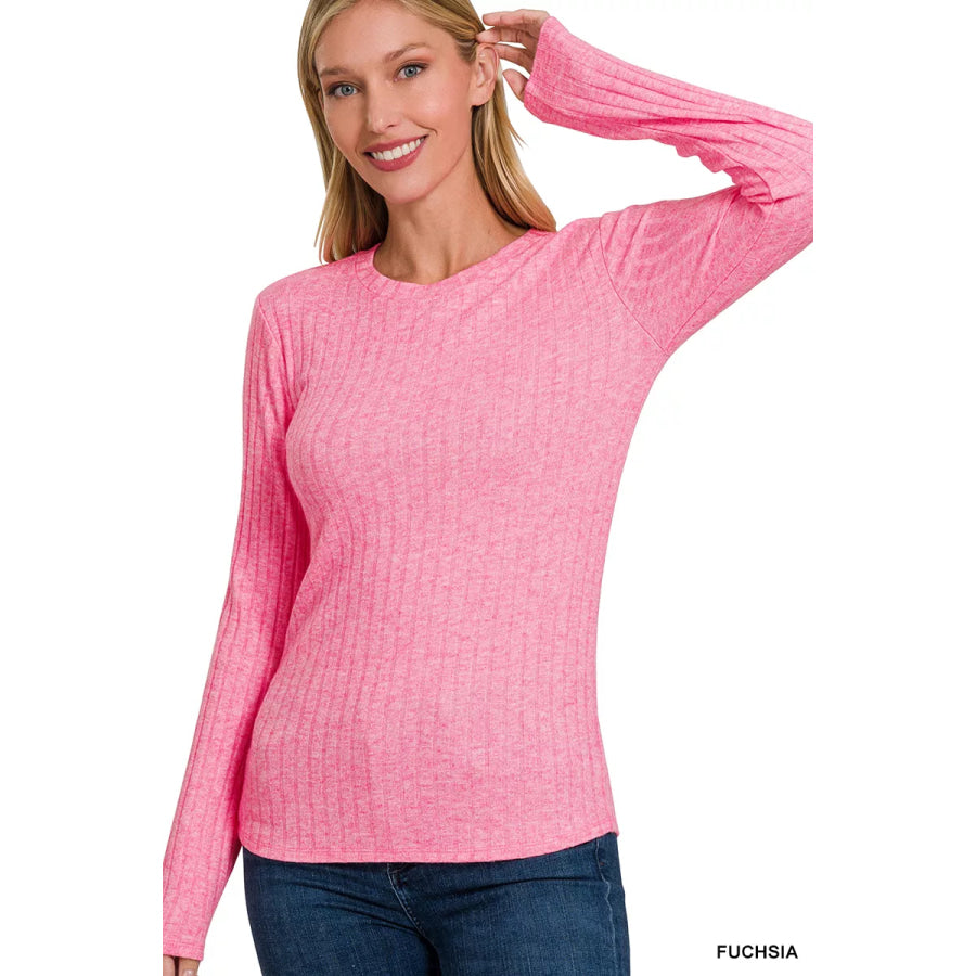 Zenana Ribbed Long Sleeve Round Neck T-Shirt