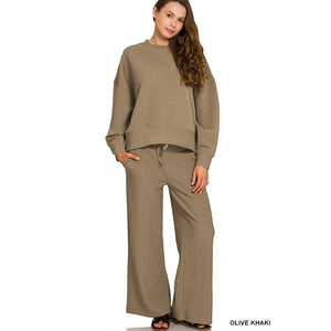 Zenana Ribbed Round Neck Pullover and Drawstring Pants Set