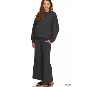 Zenana Ribbed Round Neck Pullover and Drawstring Pants Set
