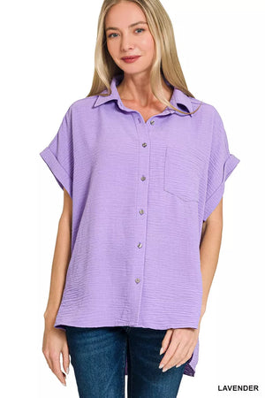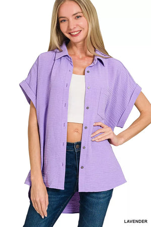 Zenana Woven Airflow Button Down Shirt