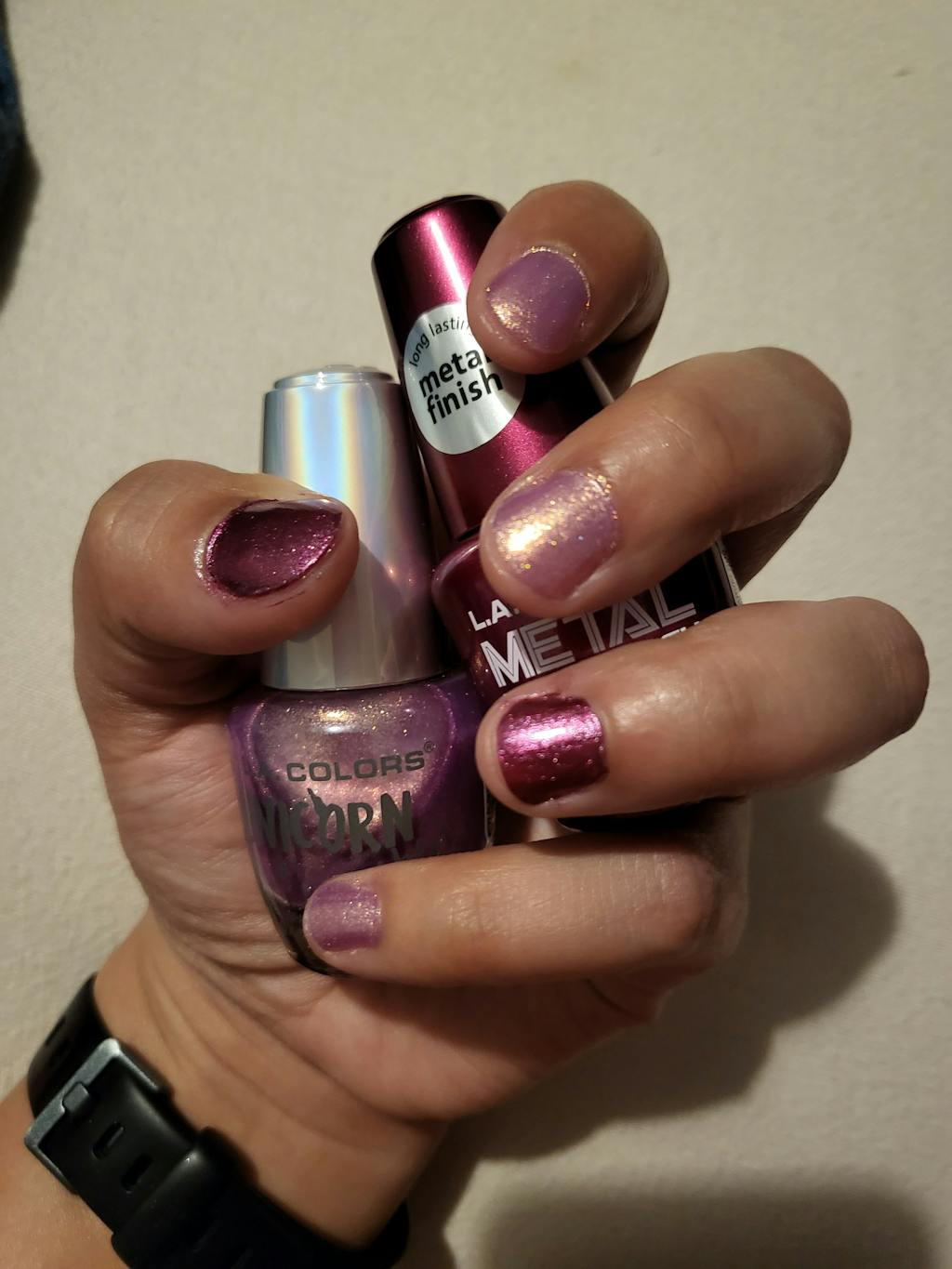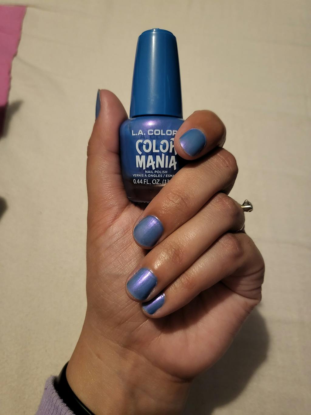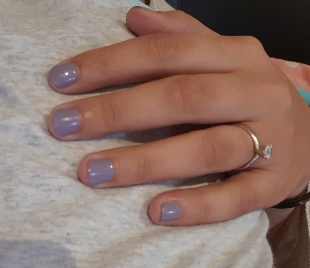 This nail polish is a beautiful purple; it looks great. It is easy to apply even for someone who rarely gets her nails done like me and drying time is not too long.