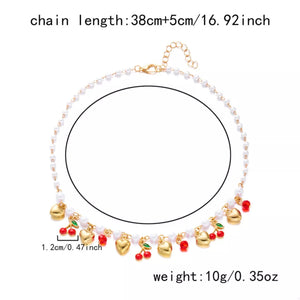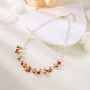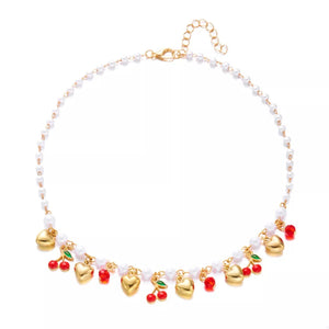 18K Gold-Plated Cherry & Heart Pearl Necklace