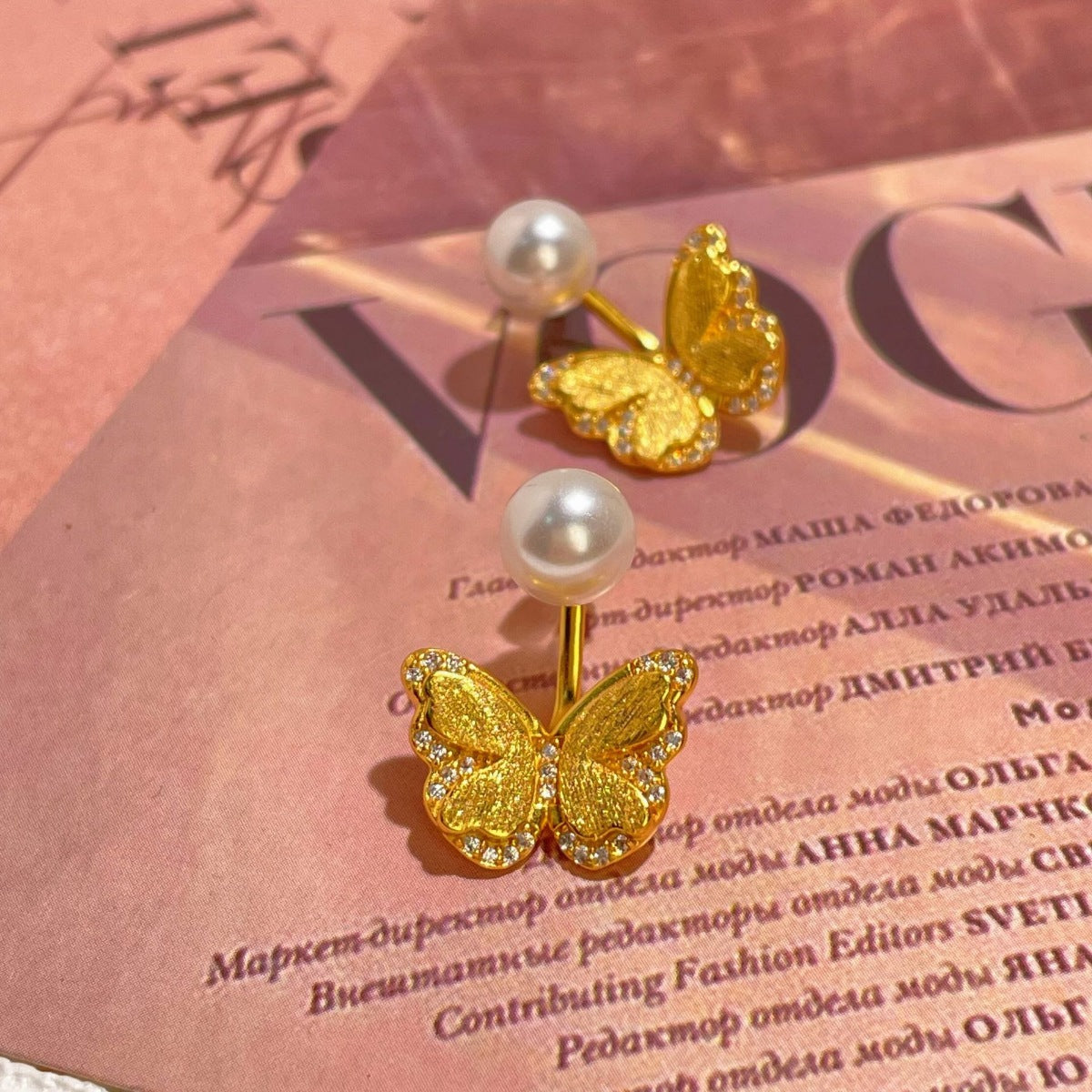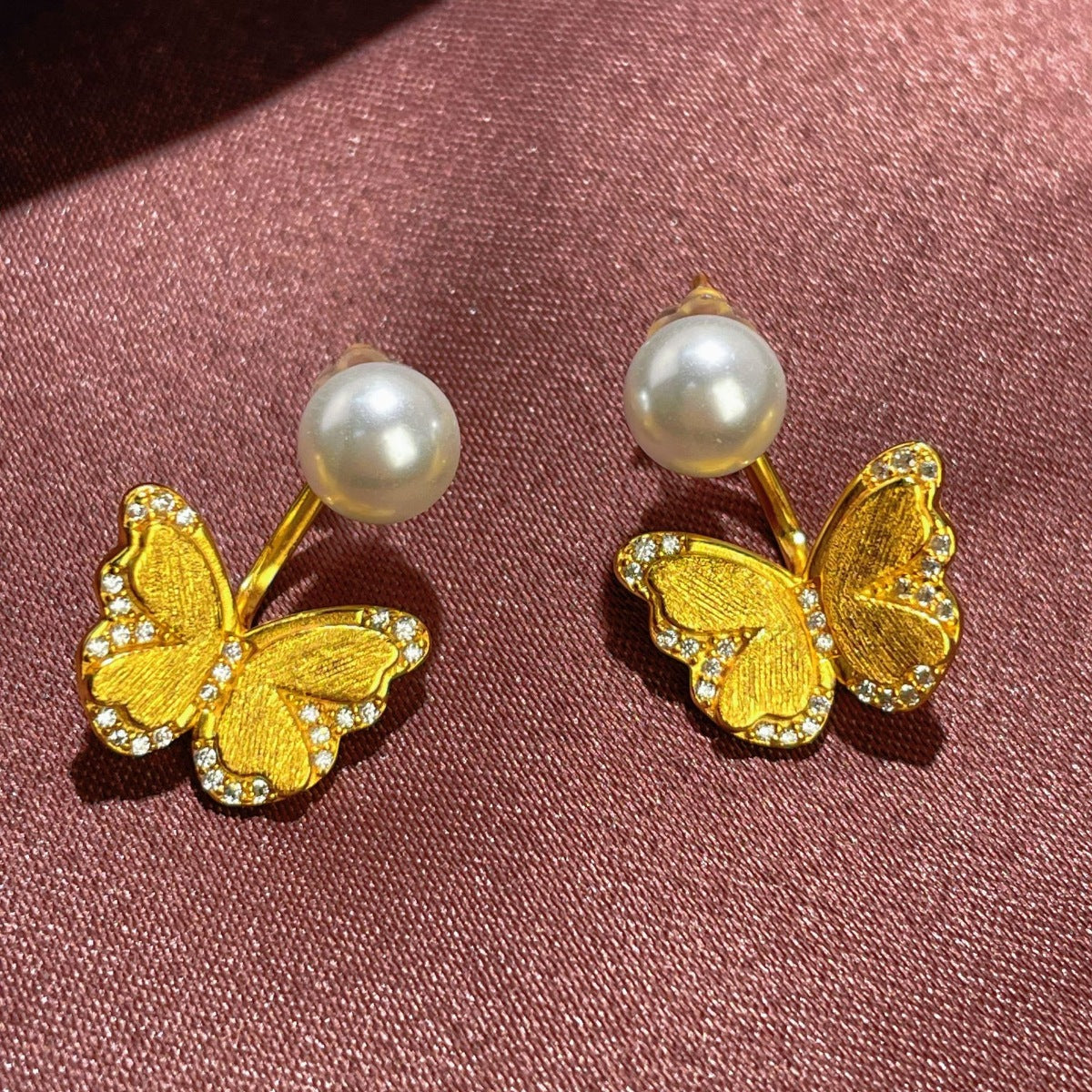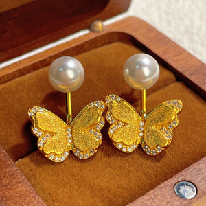 18K Gold-Plated Pearl Butterfly Earrings