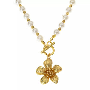18K Gold-Plated Pearl Flower Pendant Necklace