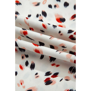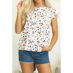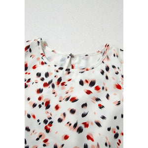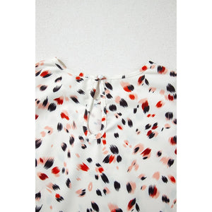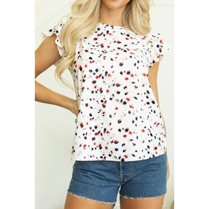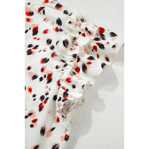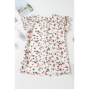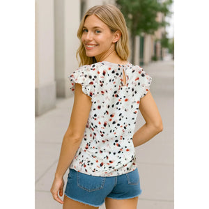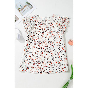 Abstract Print Ruffle Flutter Sleeve Keyhole Back Slim Blouse