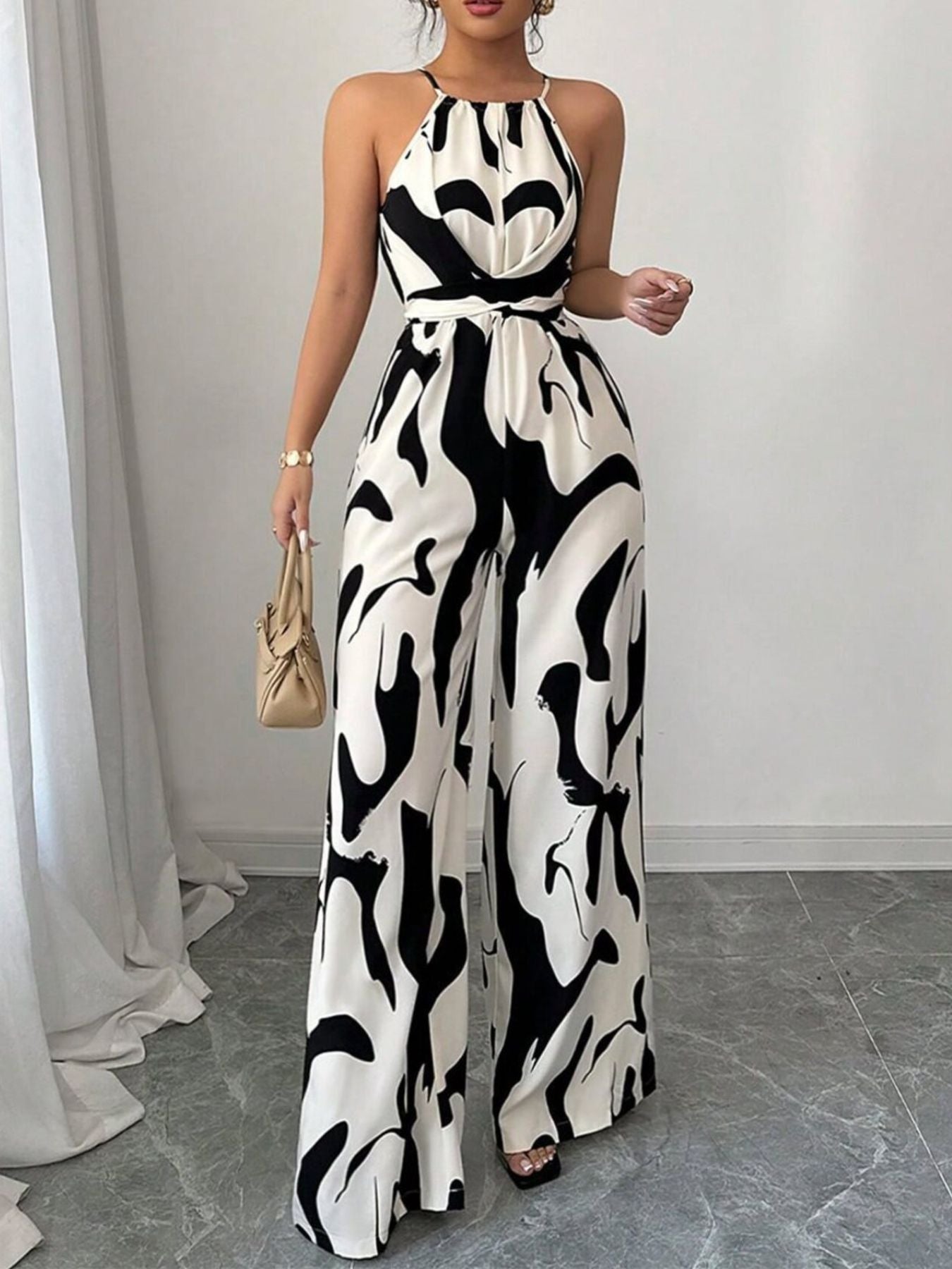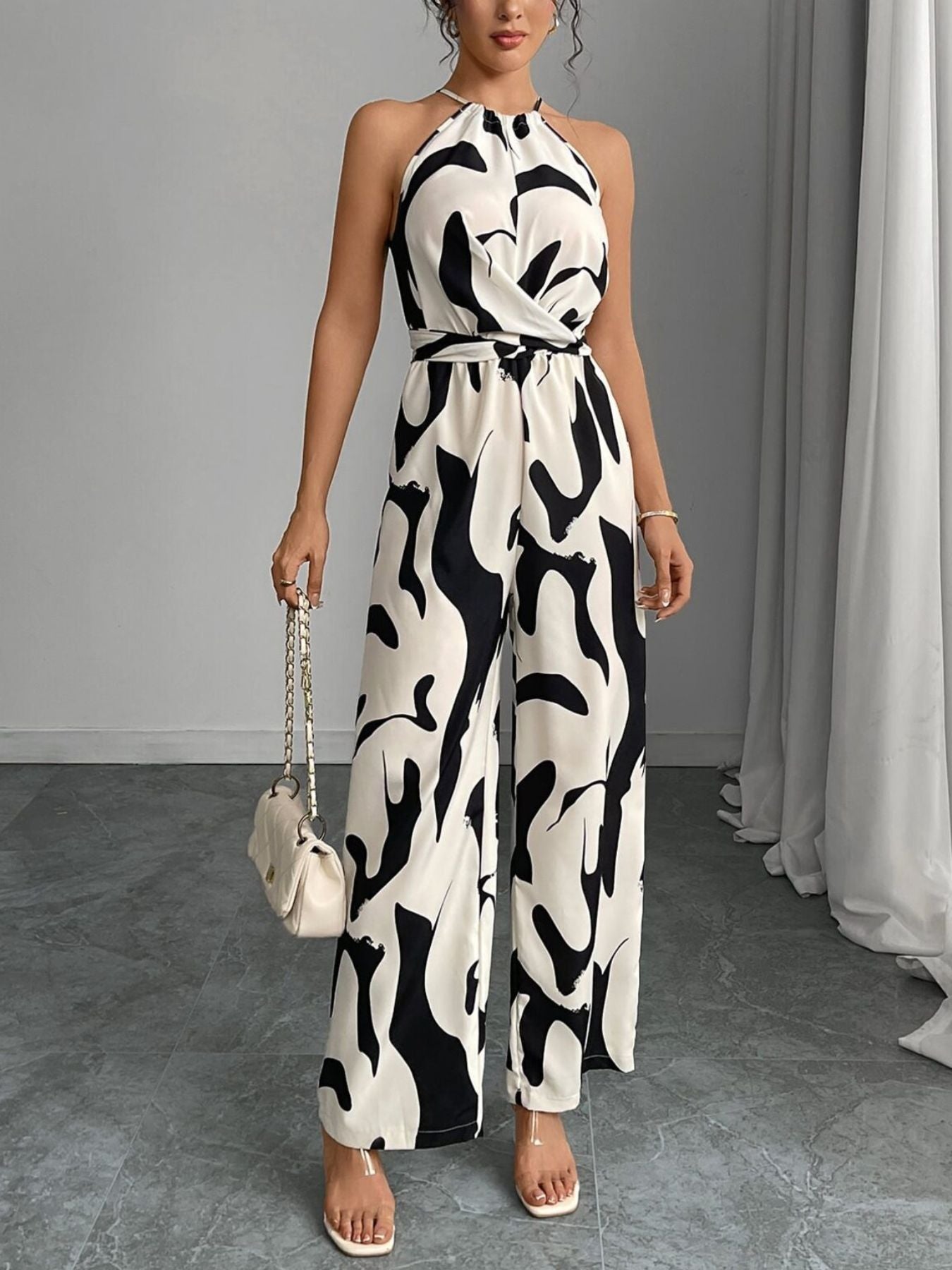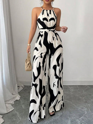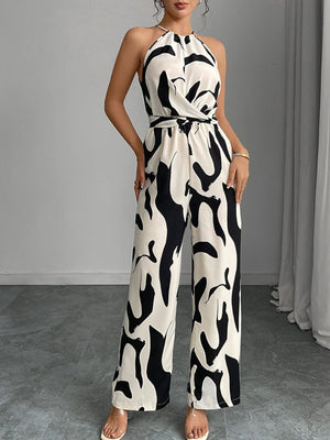 Abstract Print Wide Leg Jumpsuit