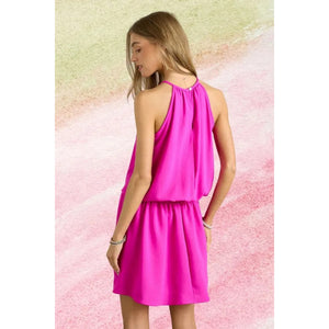 The Halter Neck Smocking Waist Dress is a stylish and flattering piece that features a halter neckline and a smocked waist. The halter neck design adds a chic and sophisticated touch to the dress, while the smocked waist creates a defined and figure-flattering silhouette. This dress is perfect for a variety of occasions, from casual daytime events to more formal gatherings. The halter neckline shows off the shoulders and creates an elegant look, while the smocked waist accentuates the waistline for a feminine and stylish appearance. Pair this dress with heels or sandals for a complete outfit that is both trendy and comfortable. It's a versatile piece that can be dressed up or down depending on the accessories and shoes you choose.
