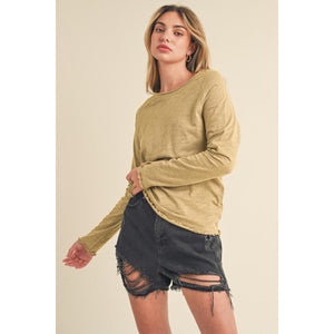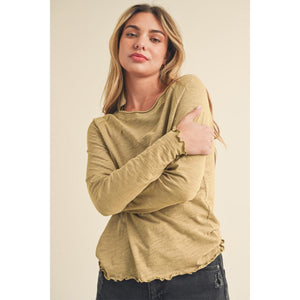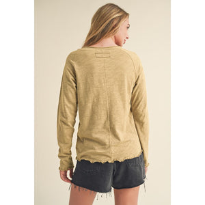 Aemi + Co Lettuce Hemline Round Neck Raglan Sleeve T-Shirt