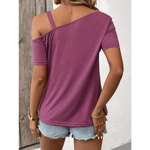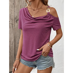 Asymmetric Shoulder T-Shirt with Metal Buckle Detail