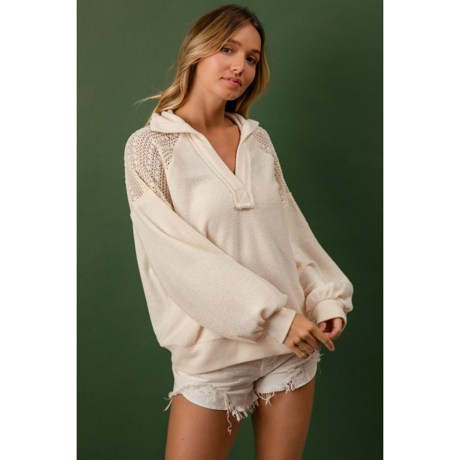 A French Terry Lace Shoulder Top combines comfort with delicate detailing for a stylish look. The French terry fabric offers a soft and cozy feel, perfect for everyday wear. The lace shoulder accents add a feminine and elegant touch to the top, adding a touch of sophistication. Pair this top with jeans or leggings for a casual yet chic outfit. The combination of French terry and lace creates a versatile top that can be dressed up or down. It's a great choice for adding a touch of texture and interest to your wardrobe.