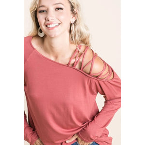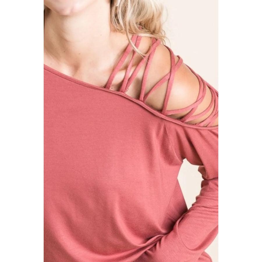 BiBi Jersey Knit One Shoulder Top With Criss Cross