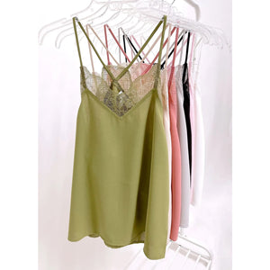 The Lace Cami Solid Tank Top is a versatile and chic piece featuring delicate lace detailing on a solid-colored fabric. The cami style offers a sleek and feminine silhouette, while the lace adds a touch of elegance and sophistication. Perfect for layering or wearing on its own, this tank top can be styled with jeans, skirts, or shorts for a polished and stylish look suitable for various occasions.