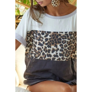 BiBi Leopard Printed Jersey Color Block Roll Up Top