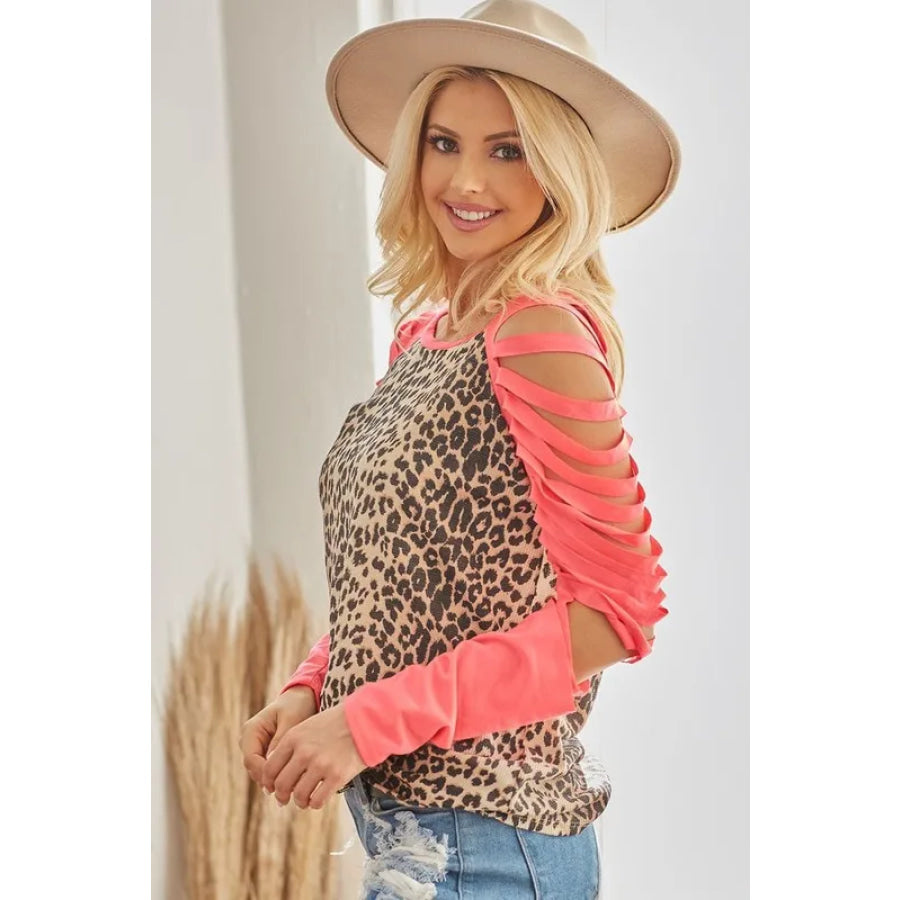 BiBi Leopard Thermal Top with Tie Dye Laser Cut Sleeves