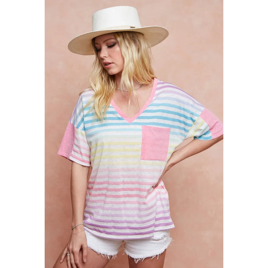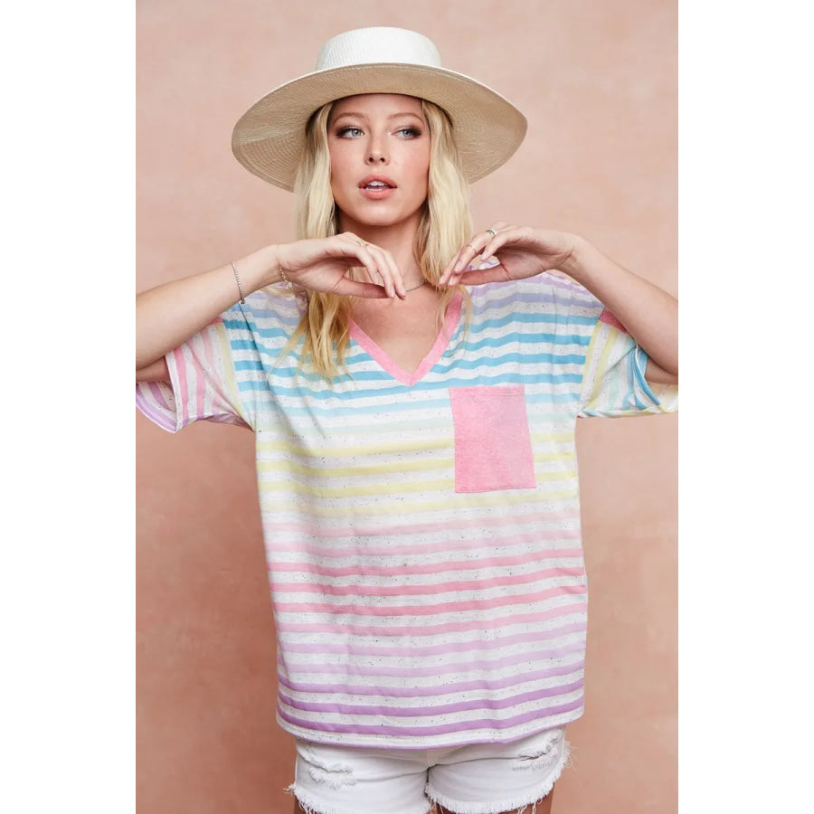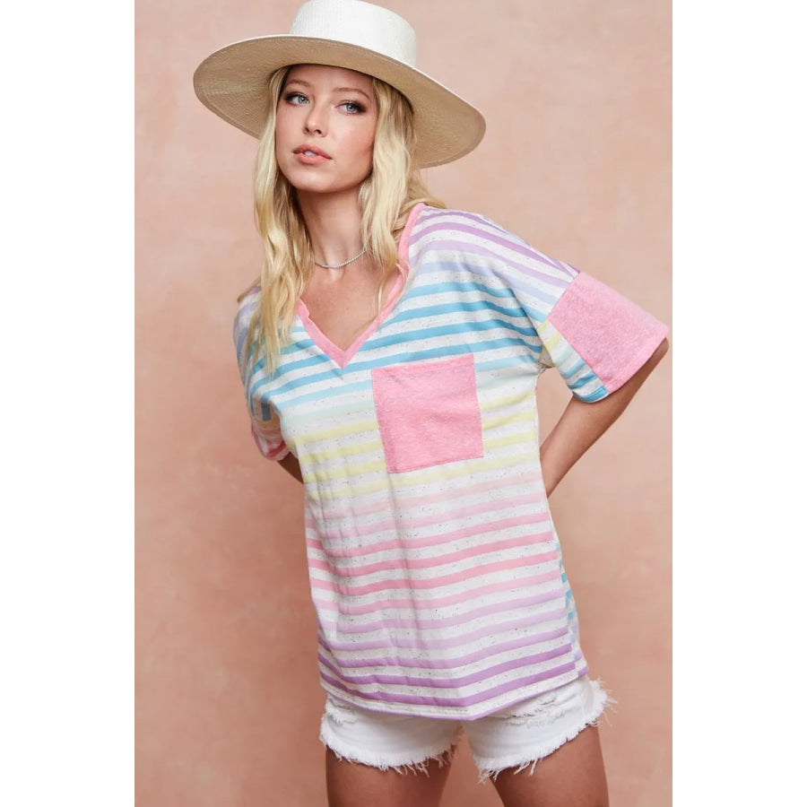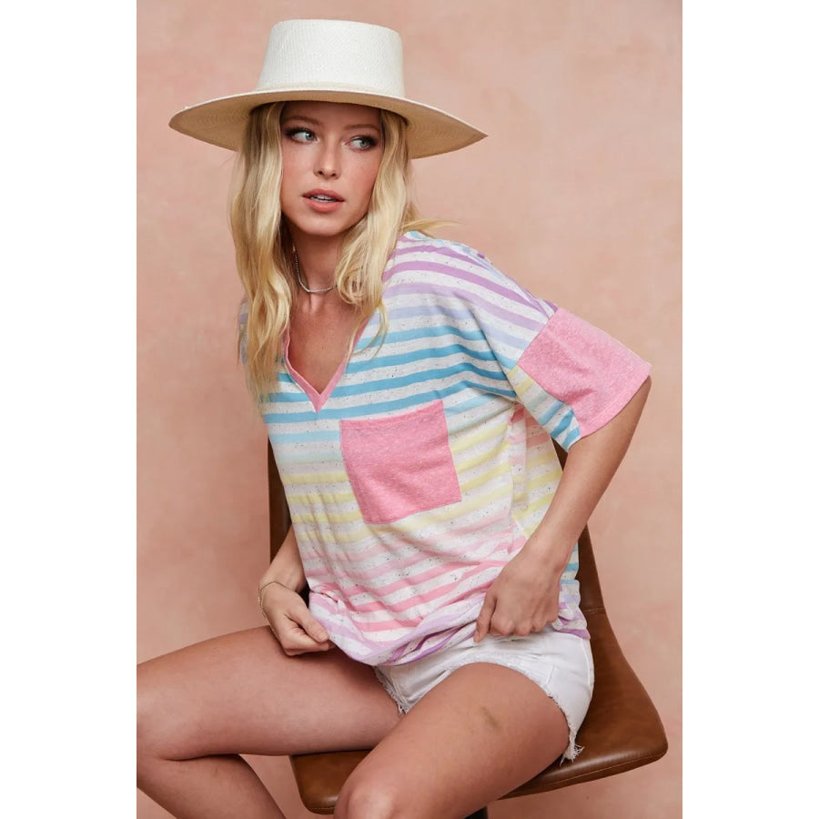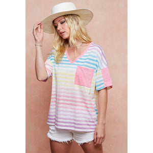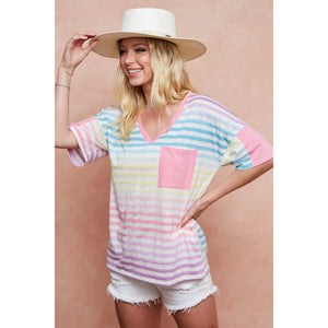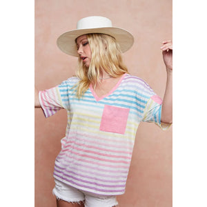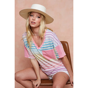 BiBi Rainbow Stripe Printed Triblend Knit Top