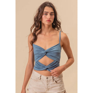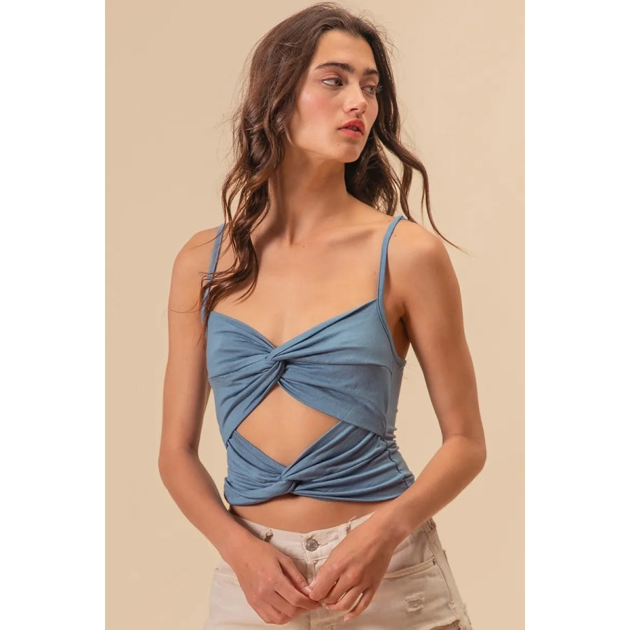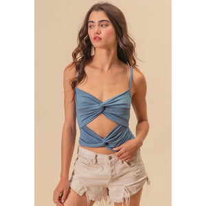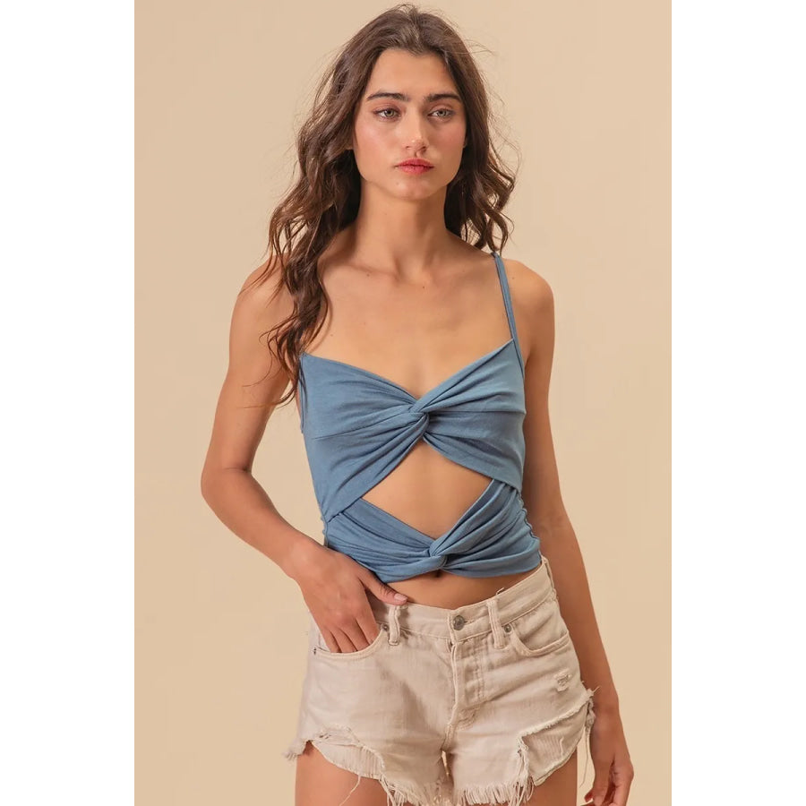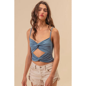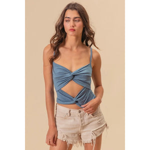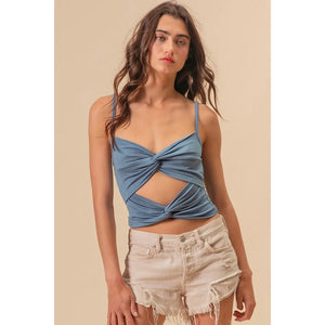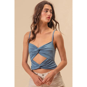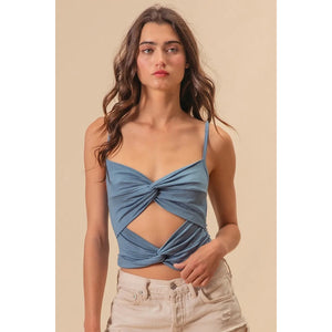 BiBi Rayon Span Jersey Knit Double Twist Front Cami Top