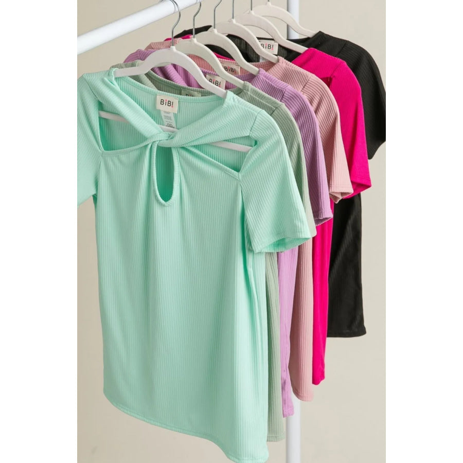 BiBi Rib Knit with Cut Out and Front Twist Detailed Top