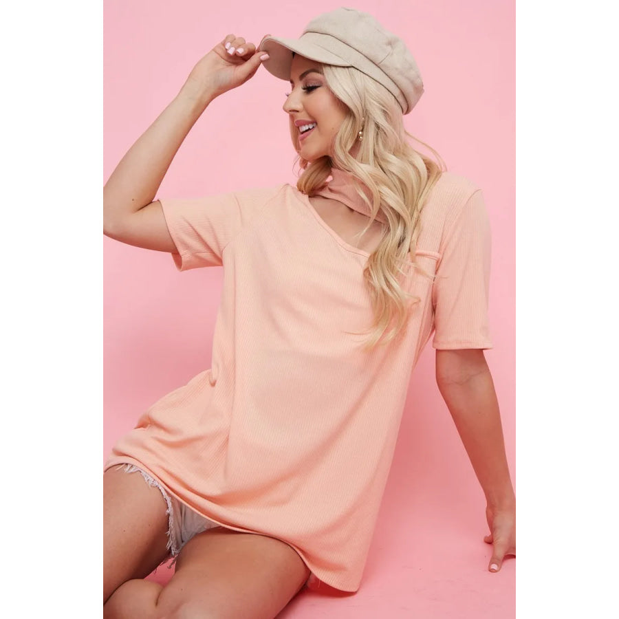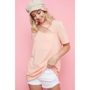 BiBi Rib Knit With Front Cut Out Mock Neck Top