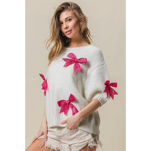 The Sequin-Bow Puff Sleeve Sweater is a dazzling and chic piece that effortlessly combines the glamour of sequins with the charming detail of a bow and trendy puff sleeves. This sweater is perfect for making a bold and stylish statement, whether for a special occasion or to add some sparkle to your everyday look. Elevate your outfit with this eye-catching and fashionable Sequin-Bow Puff Sleeve Sweater, guaranteed to turn heads and make you stand out in style.