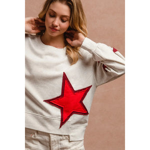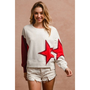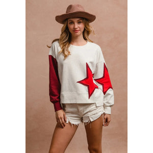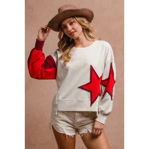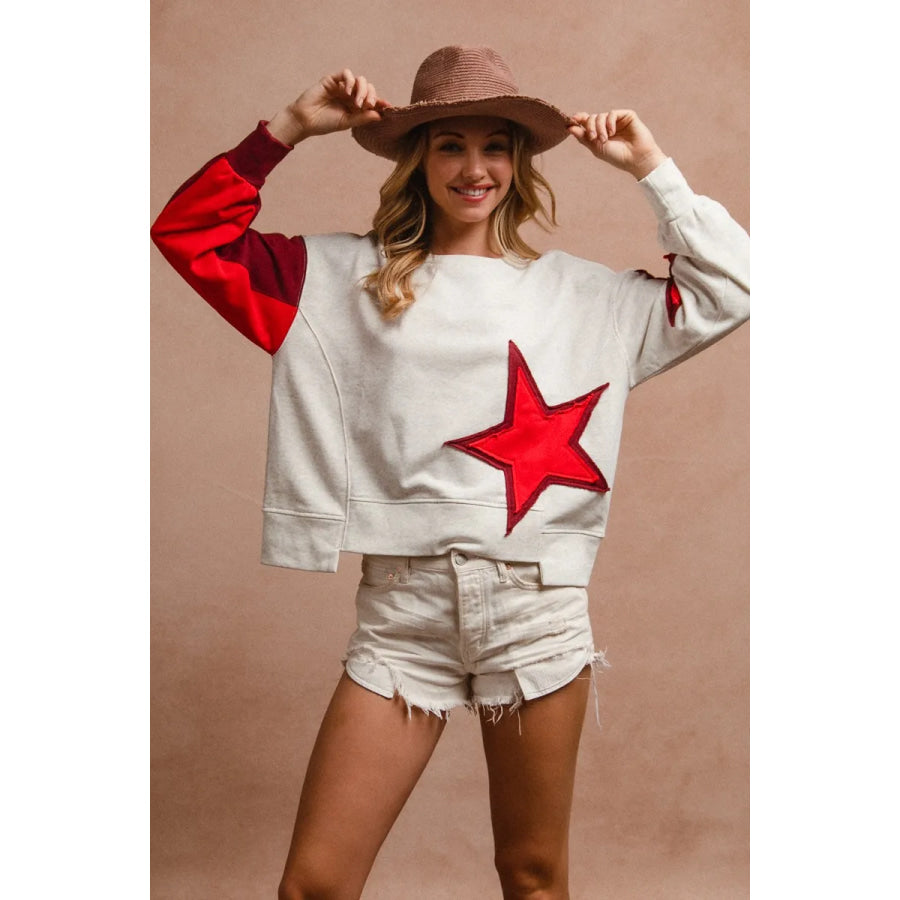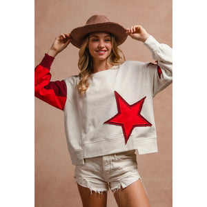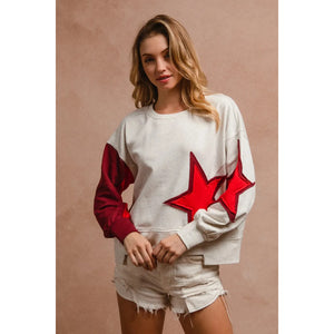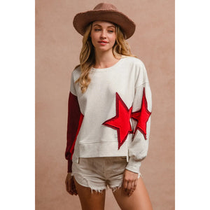 BiBi Star Patch And Spliced Hemline French Terry Long Sleeve Sweatshirt
