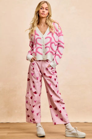 BiBi Textured Heart Buttoned V Neck Cardigan