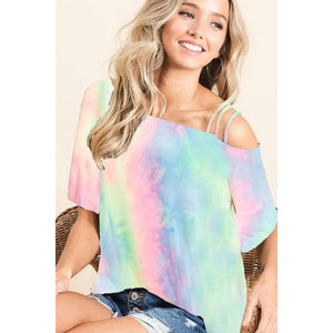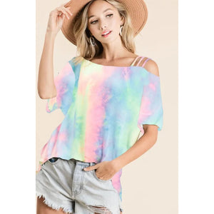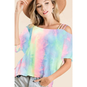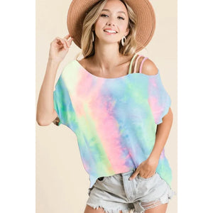 BiBi Tie Dye French Terry Strapped One Shoulder Top