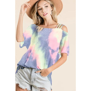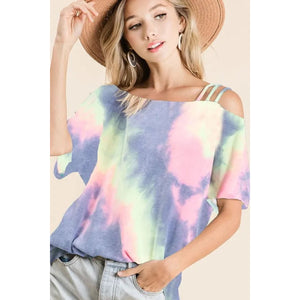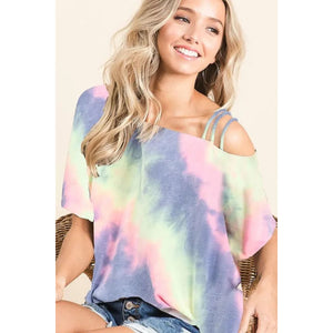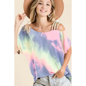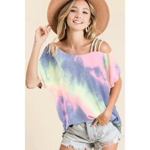 BiBi Tie Dye French Terry Strapped One Shoulder Top