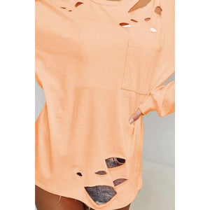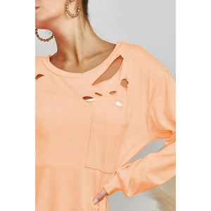 This t-shirt is made of triblend fabric and features laser-cut detailing for a modern and edgy look. The laser-cut details add a unique and intricate design element to the t-shirt, creating a stylish and trendy vibe. Made with a soft and comfortable triblend material, this shirt is perfect for everyday wear. Elevate your casual wardrobe with this chic and stylish t-shirt that effortlessly combines comfort and fashion-forward flair.