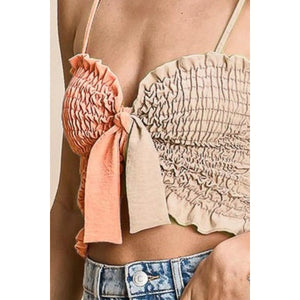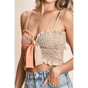 BiBi Woven Color Block Smocked with Ribbon Bra Top
