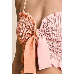 BiBi Woven Color Block Smocked with Ribbon Bra Top
