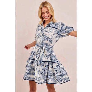 A woven printed tiered dress typically features multiple layers (tiers) of fabric that create a layered look. The dress is made from a woven fabric, which means that it is constructed by weaving threads together. The printed design adds visual interest to the dress. This style is often flowy and feminine, making it a popular choice for a variety of occasions. You can pair it with sandals for a casual look or dress it up with heels for a more formal event.