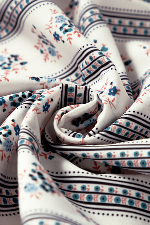 • Make a statement with the captivating combination of floral print and striped patterns.