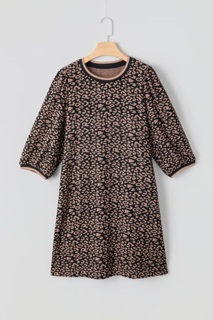 Black Leopard Print Bubble Sleeve Shift Mini Dress