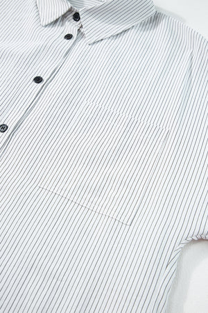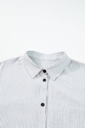 Black Stripe Roll-tab Sleeve Pocketed Long Shirt