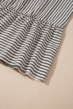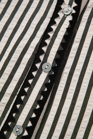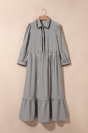 Black Stripe Scallop Trim Shirt Collar Half Button 3/4 Sleeve Long Dress