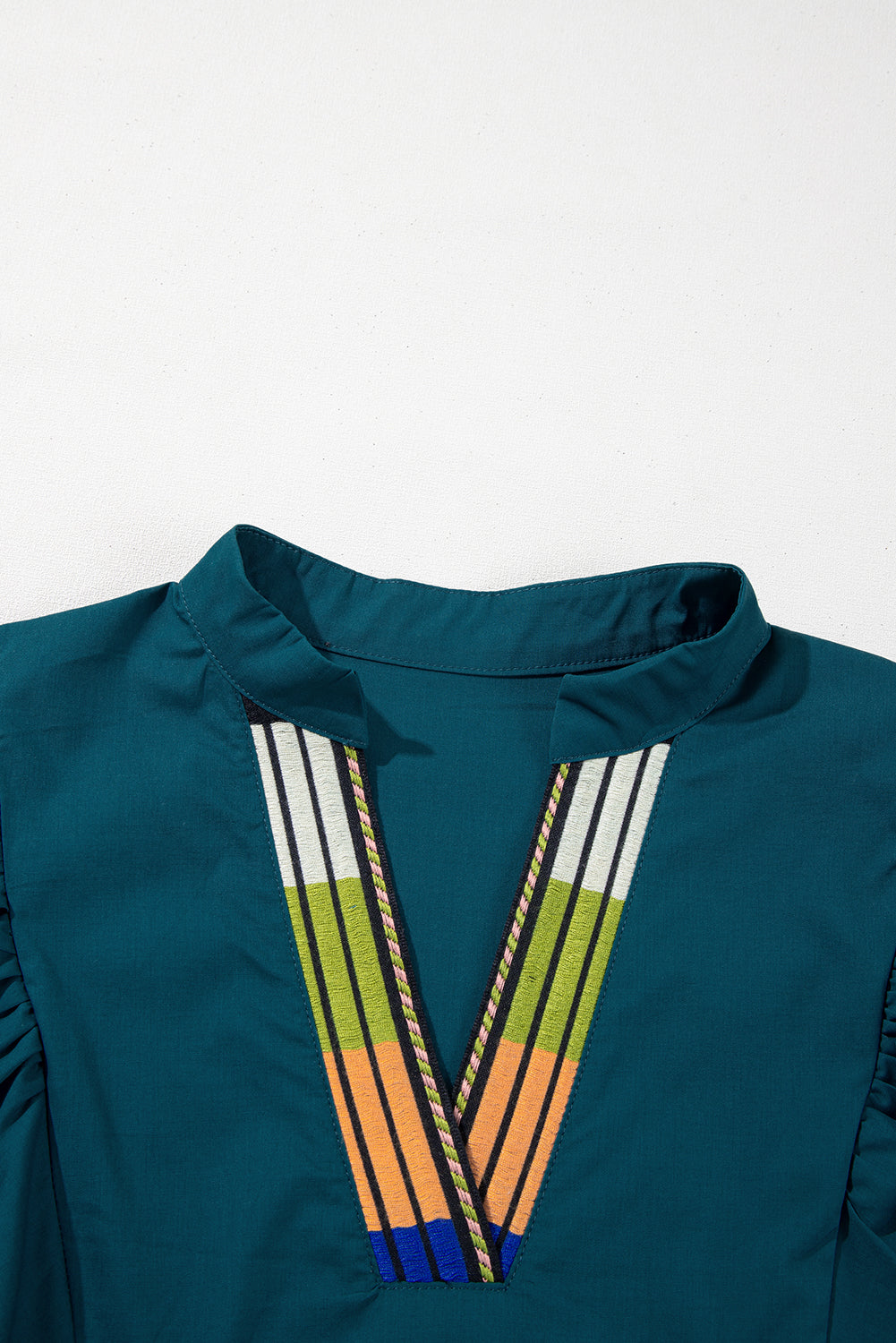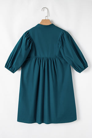Blue Sapphire Colorblock Split V Neck Puff Sleeve Mini Dress