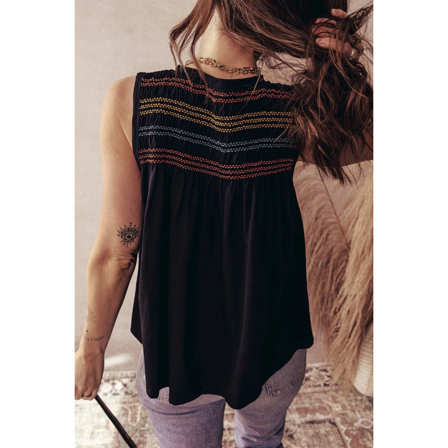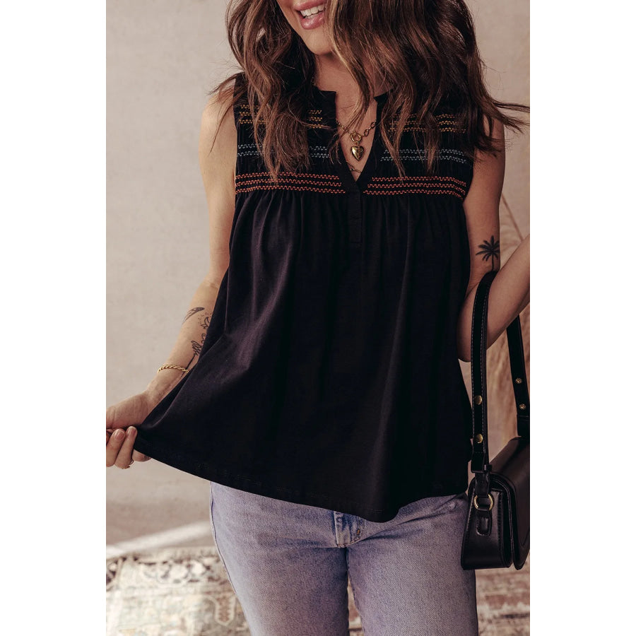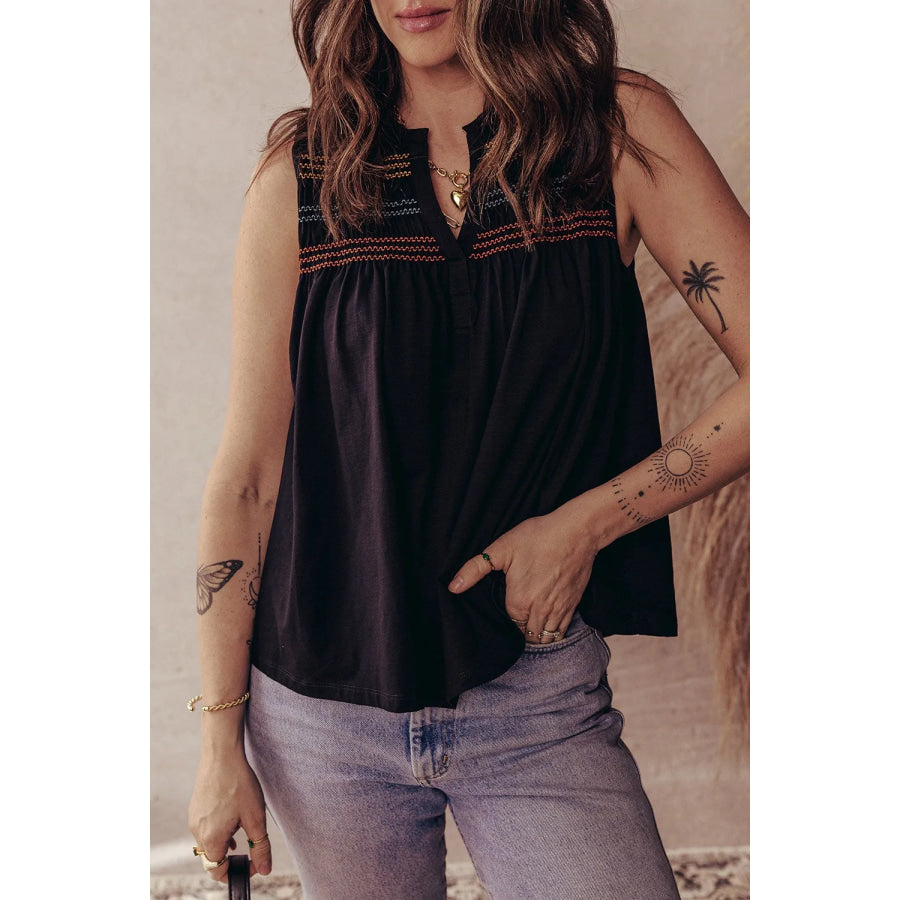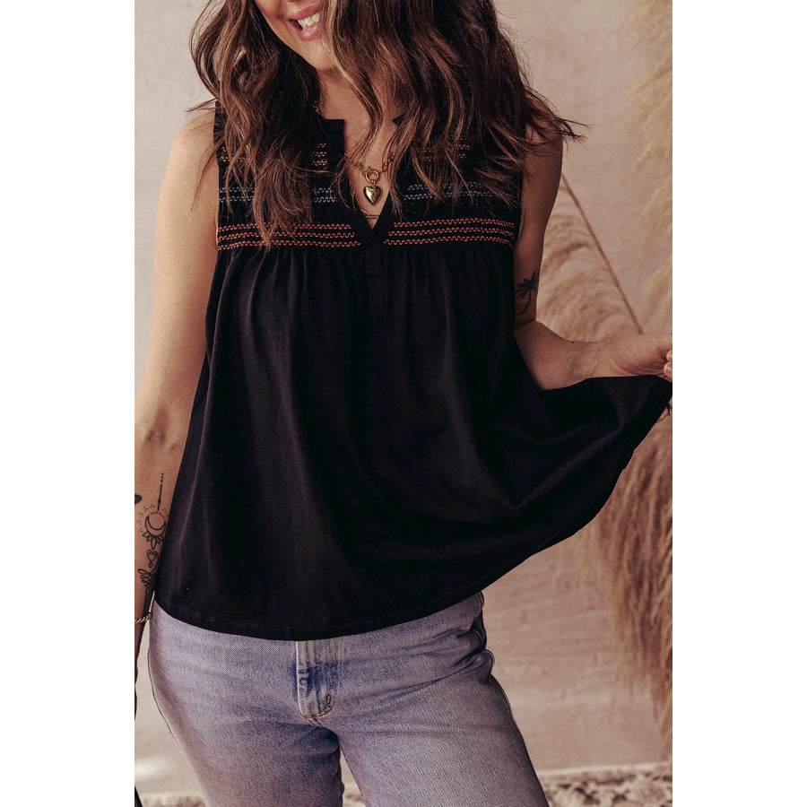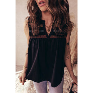 Boho Embroidered Sleeveless V-Neck Blouse