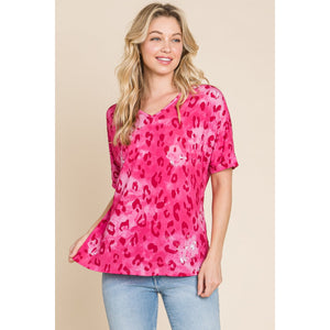 BOMBOM Leopard V-Neck Short Sleeve T-Shirt