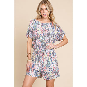 BOMBOM Printed Short Sleeve Drawstring Romper