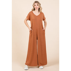 BOMBOM Ribbed Short Sleeve Wide Leg Jumpsuit