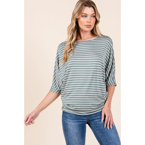 BOMBOM Striped Boat Neck Dolman Sleeve Top