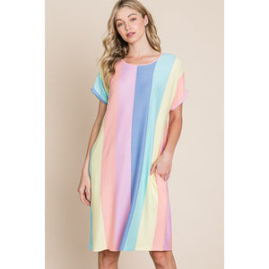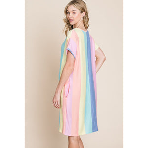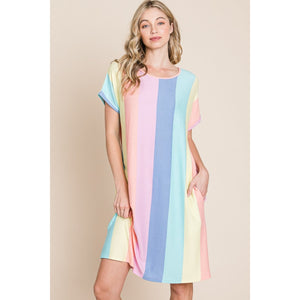 BOMBOM Striped Short Sleeve Dress with Pockets