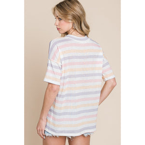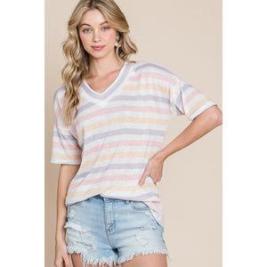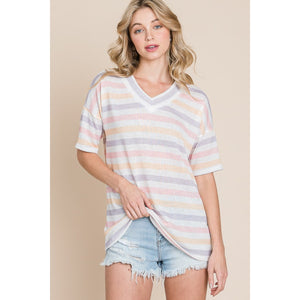 BOMBOM Striped V-Neck Short Sleeve T-Shirt