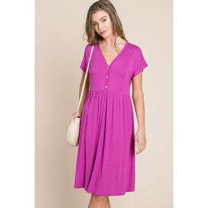 This V-Neck Button Detail Dress is a stylish and versatile piece made from soft rayon spandex fabric, ensuring both comfort and a flattering fit. The V-neckline and button detailing add a touch of sophistication to the dress, making it perfect for various occasions. Elevate your wardrobe with this chic and comfortable dress that combines style and comfort effortlessly.