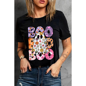 BOO Ghost Graphic Round Neck Short Sleeve T-Shirt