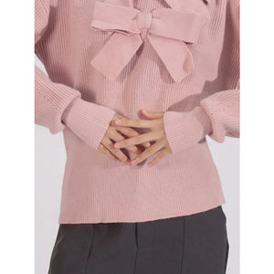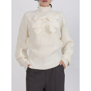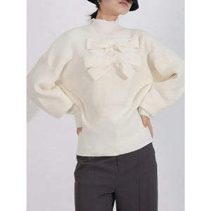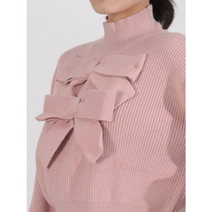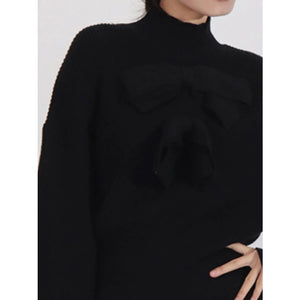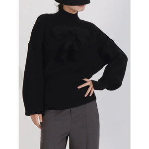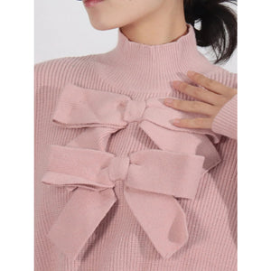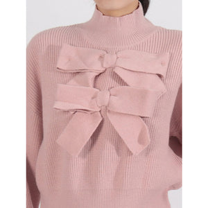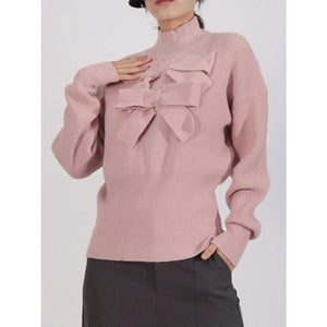 Bow Front Turtleneck Long Sleeve Sweater