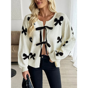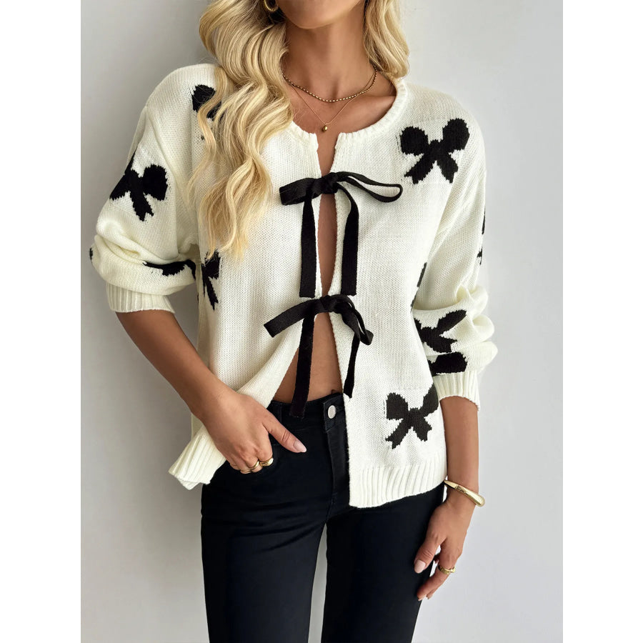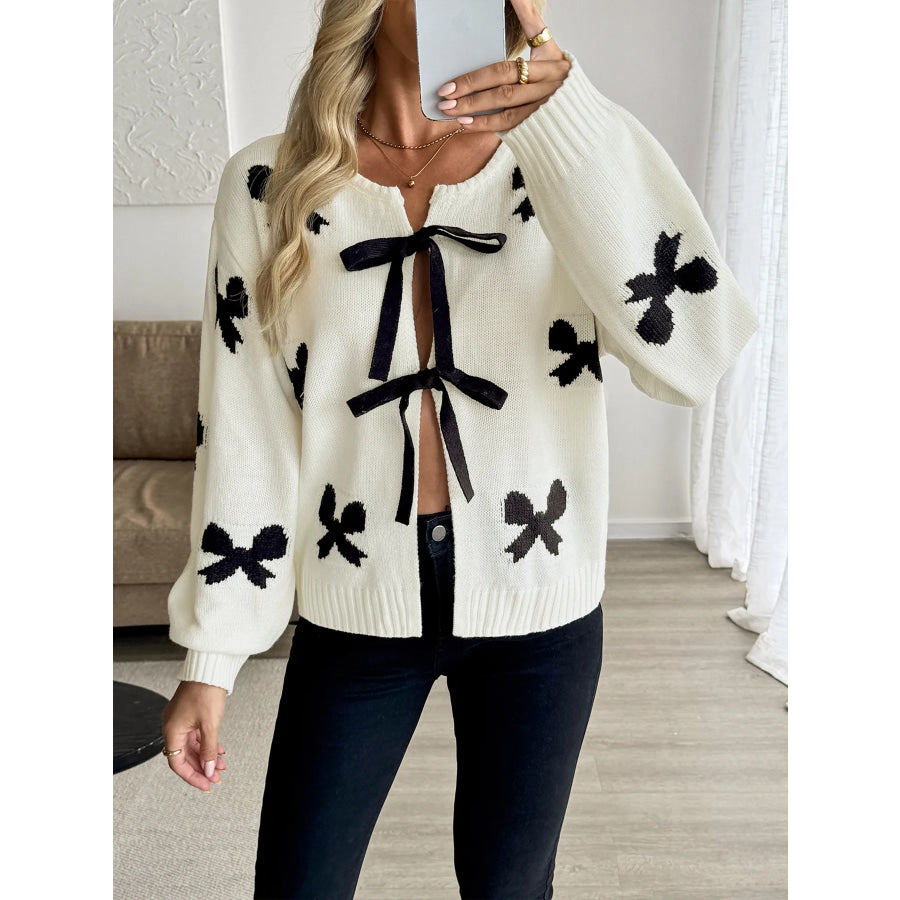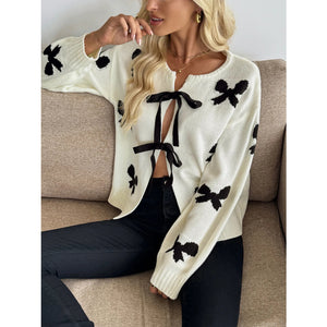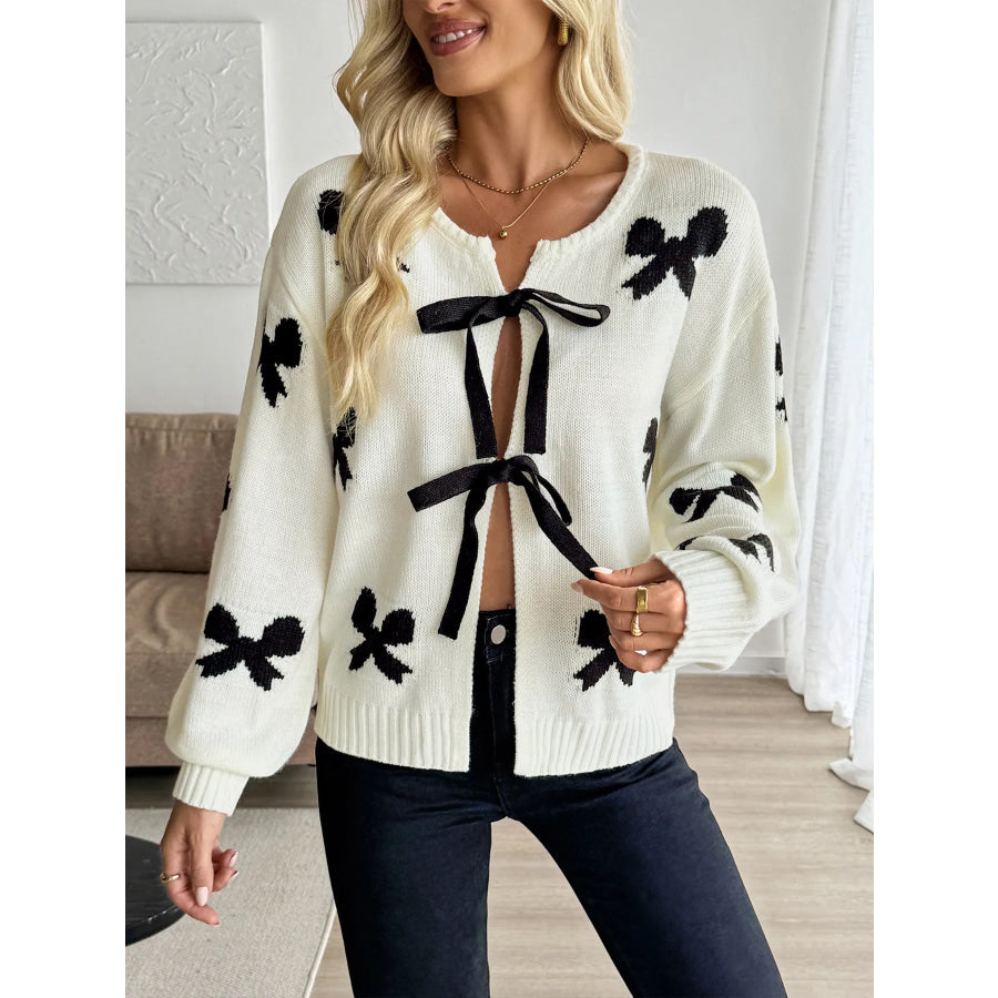 Bow Print Tie-Front Cardigan