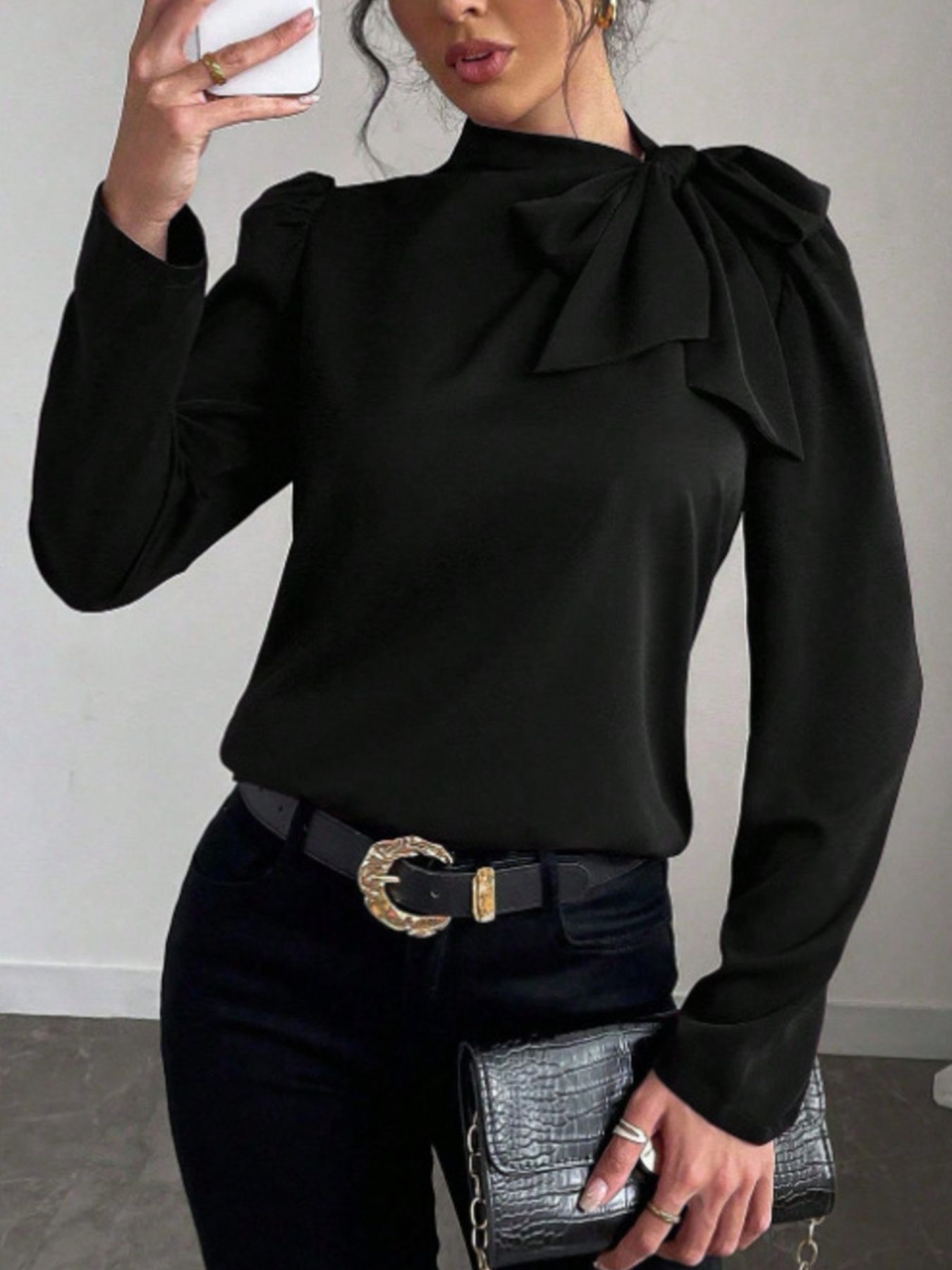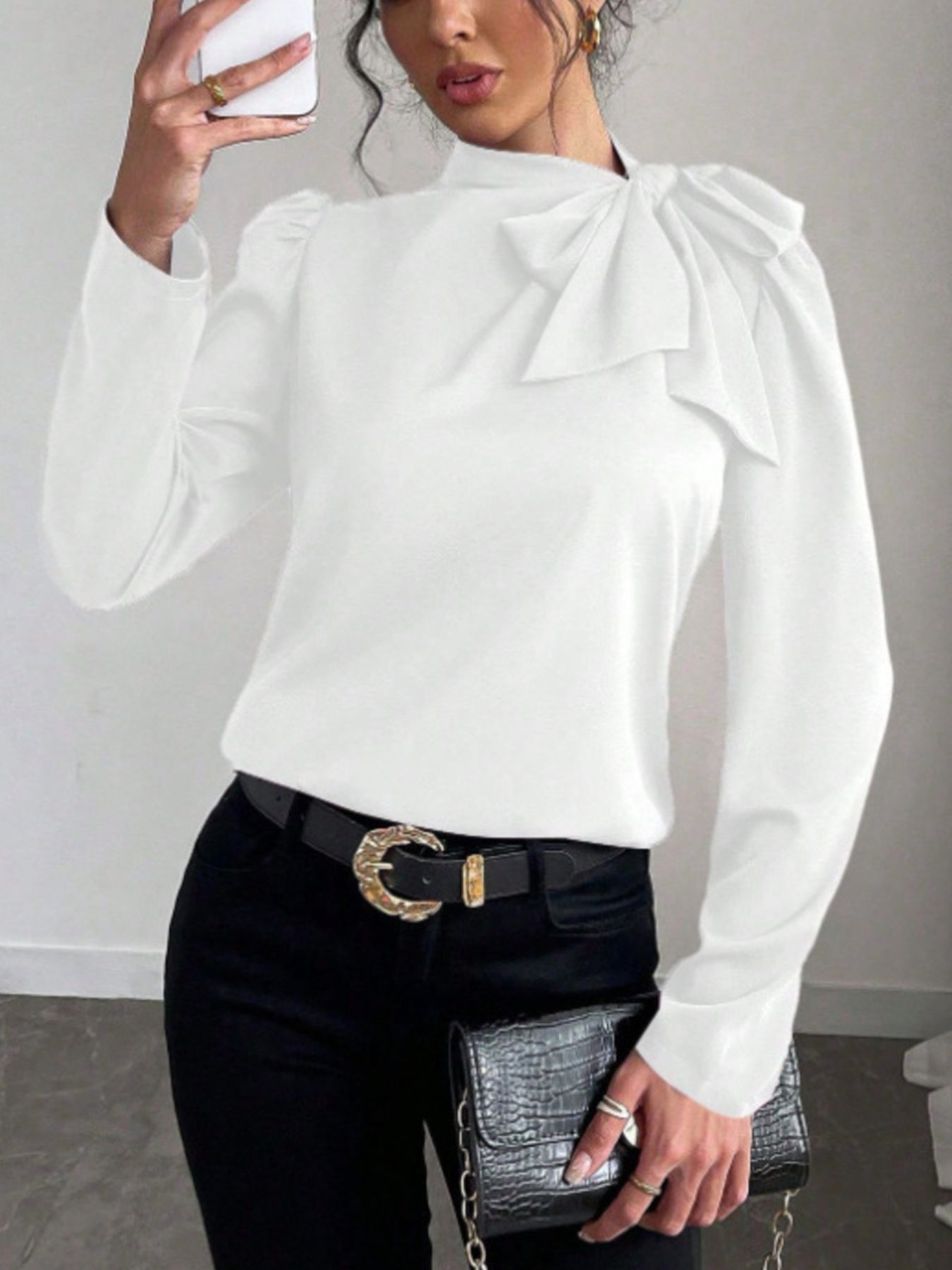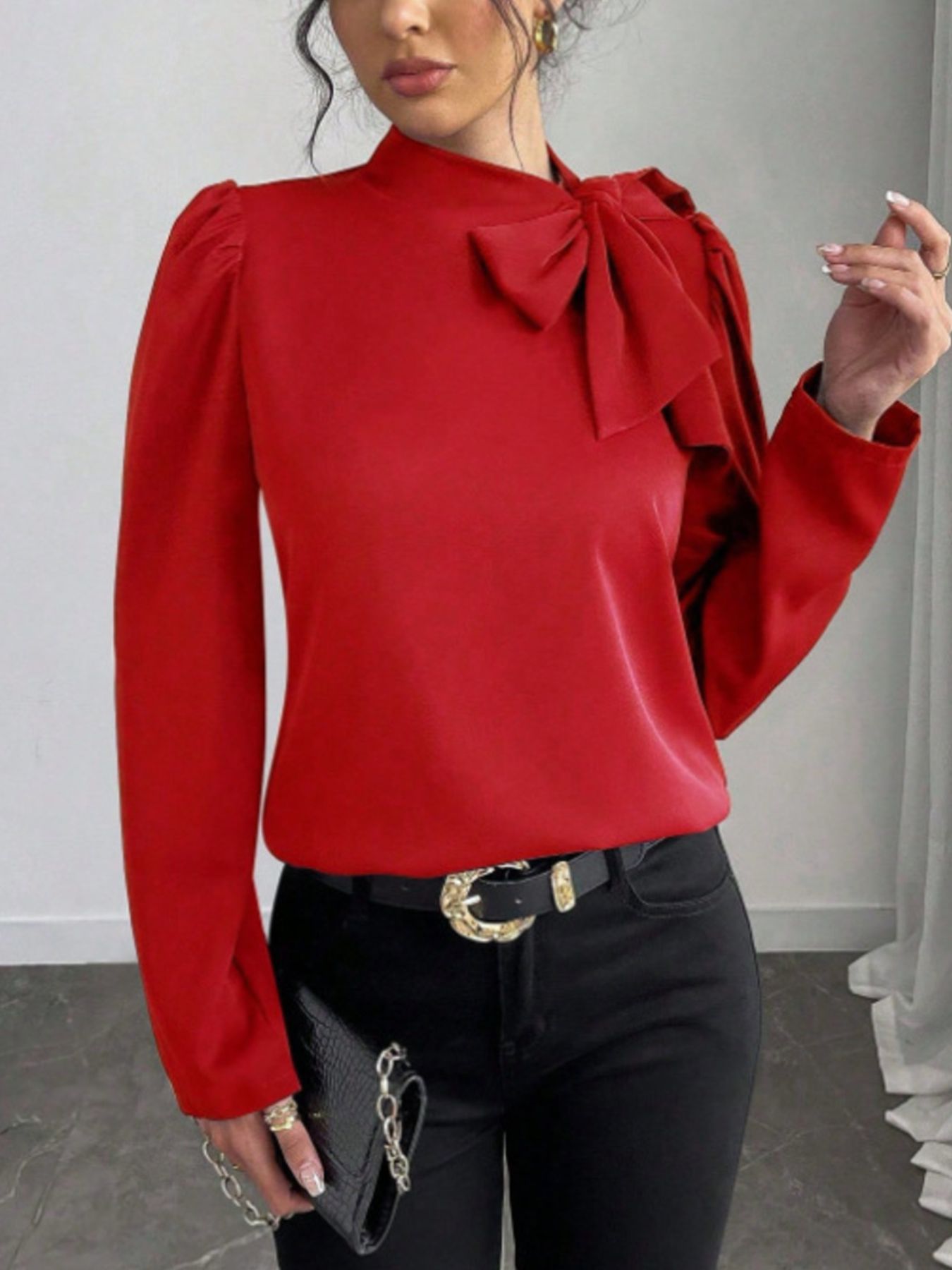 Bow-Tie Long Sleeve Blouse