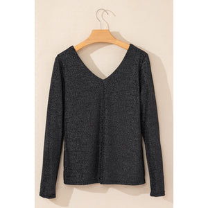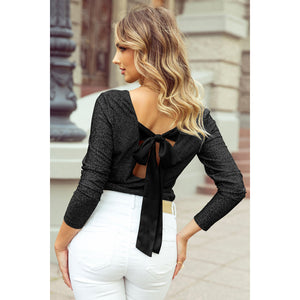 Bowknot V-Neck Long Sleeve Blouse