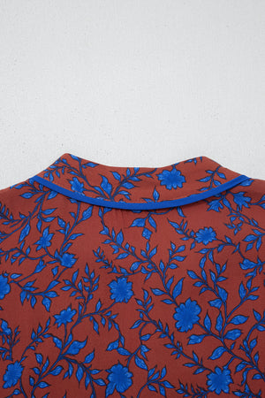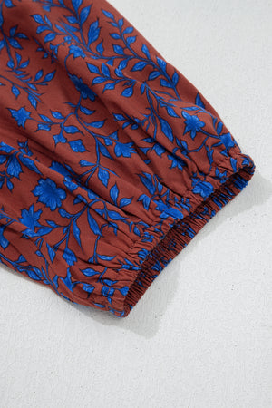 Brown 3/4 Puff Sleeve Tiered Loose Floral Dress